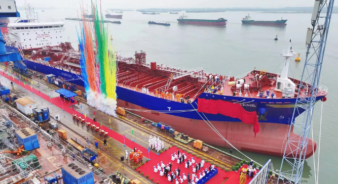 10月14日,揚(yáng)州金陵為比利時船東CMB建造的第6艘25000噸雙相不銹鋼化學(xué)品船舉行命名儀式。儀式上,教母Catherine Cauwe女士命名25000噸雙相不銹鋼化學(xué)品6#船為“BOCHEM BRI**ANE”輪。按照船東計(jì)劃,該船將在10月18日駛離船廠碼頭,正式投入營運(yùn)。